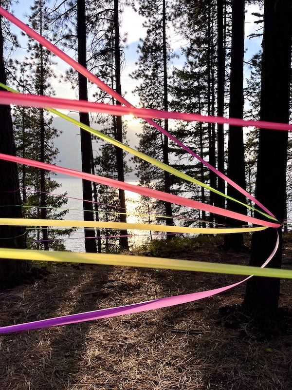 Refraction was a collaborative, interactive installation created at the Art of Retreat. This piece was all about working with the environment to create an interesting space to play in and explore. From going under, over, or through, to following the flagging tape path, to setting a hammock up within the work, there were many ways to engage with this piece. It was also interesting design challenge, as I could only arrive at the event armed with flagging tape and a concept. It was a different way of working, and I really enjoyed the organic process. Refraction wouldn’t have been possible without an awesome team of people who stepped up to help out with its installation. Thank you for your passion, Nick, Jade, Kyle, Eve, Alana, and Eric!